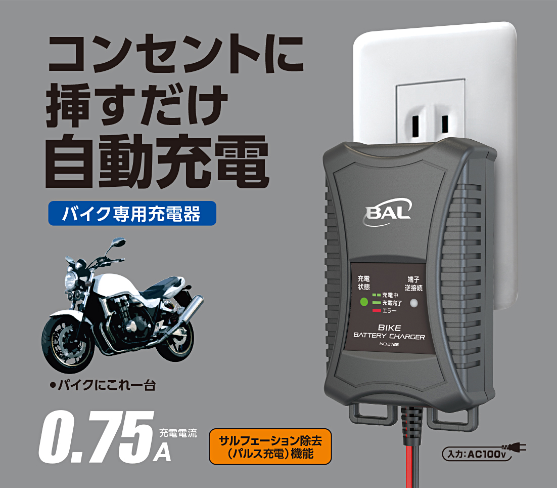 No.2726【NEW】0.75A バイク充電器