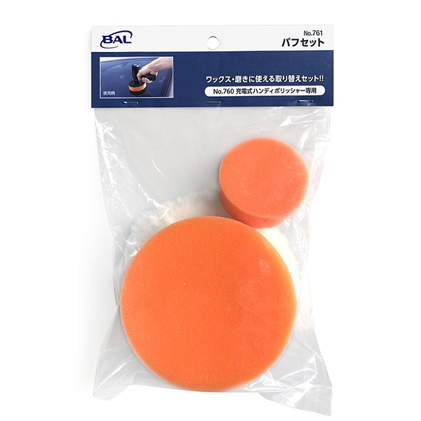 セット内容 | ・φ100mm スポンジバフ ×1 ・φ50mm スポンジバフ ×1 ・φ100mm 毛バフ ×1 |
