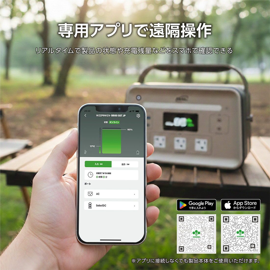 | ソーラー充電 | 約5時間(100W×1使用)で80% |